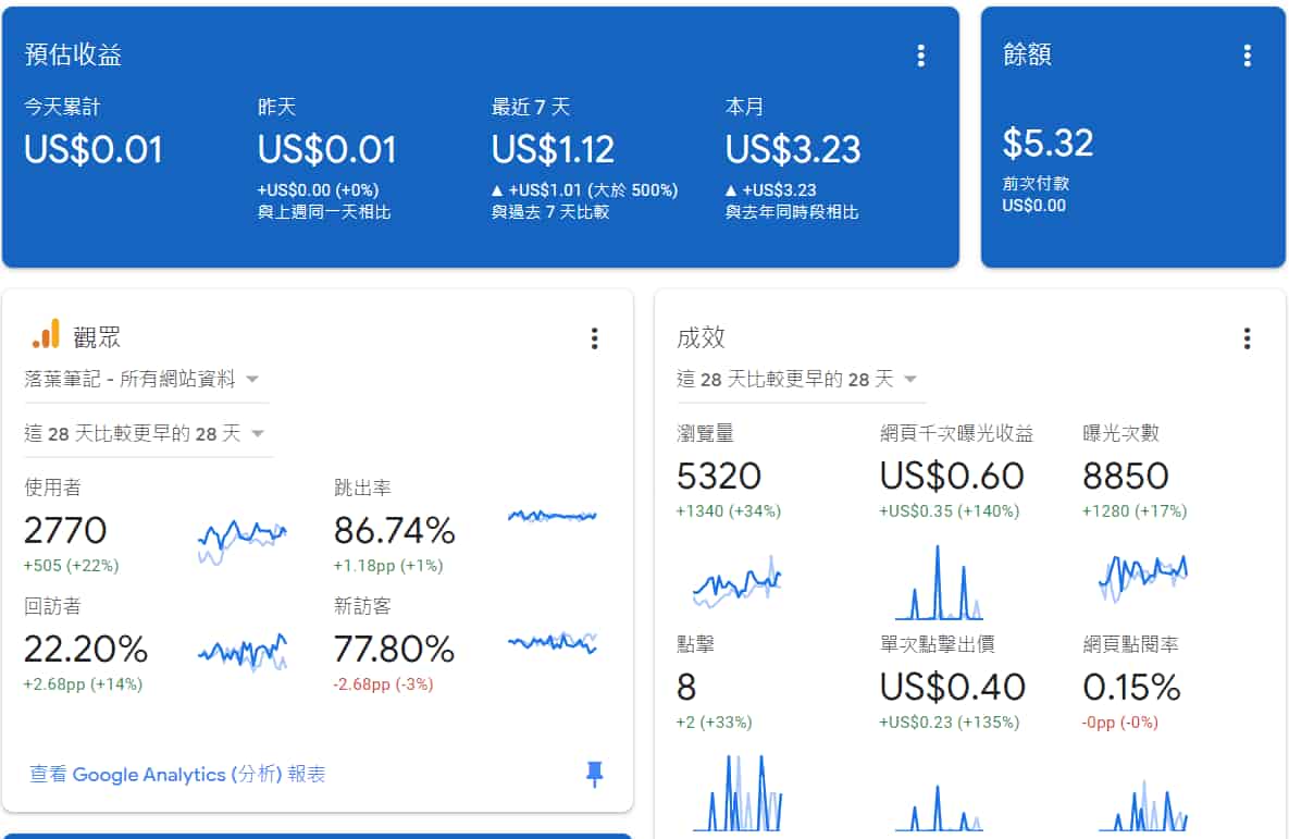 本月Google AdSense成果
