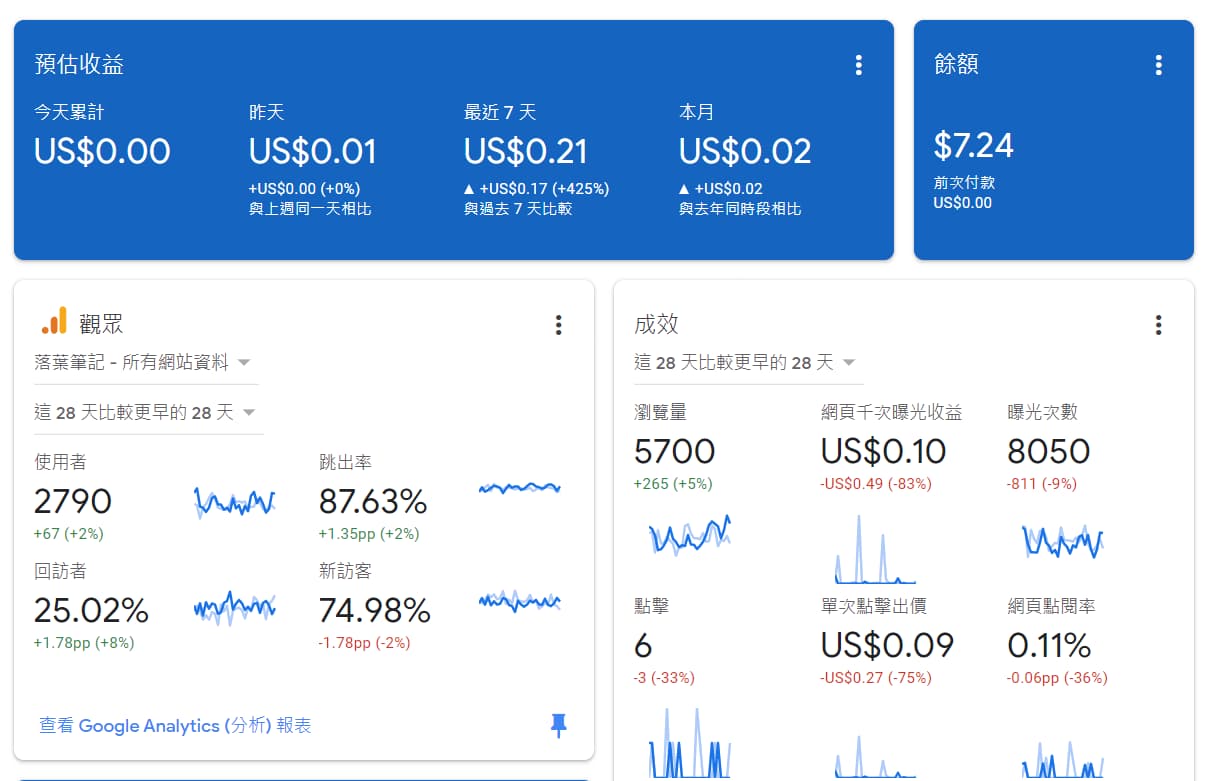 本月Google AdSense成果