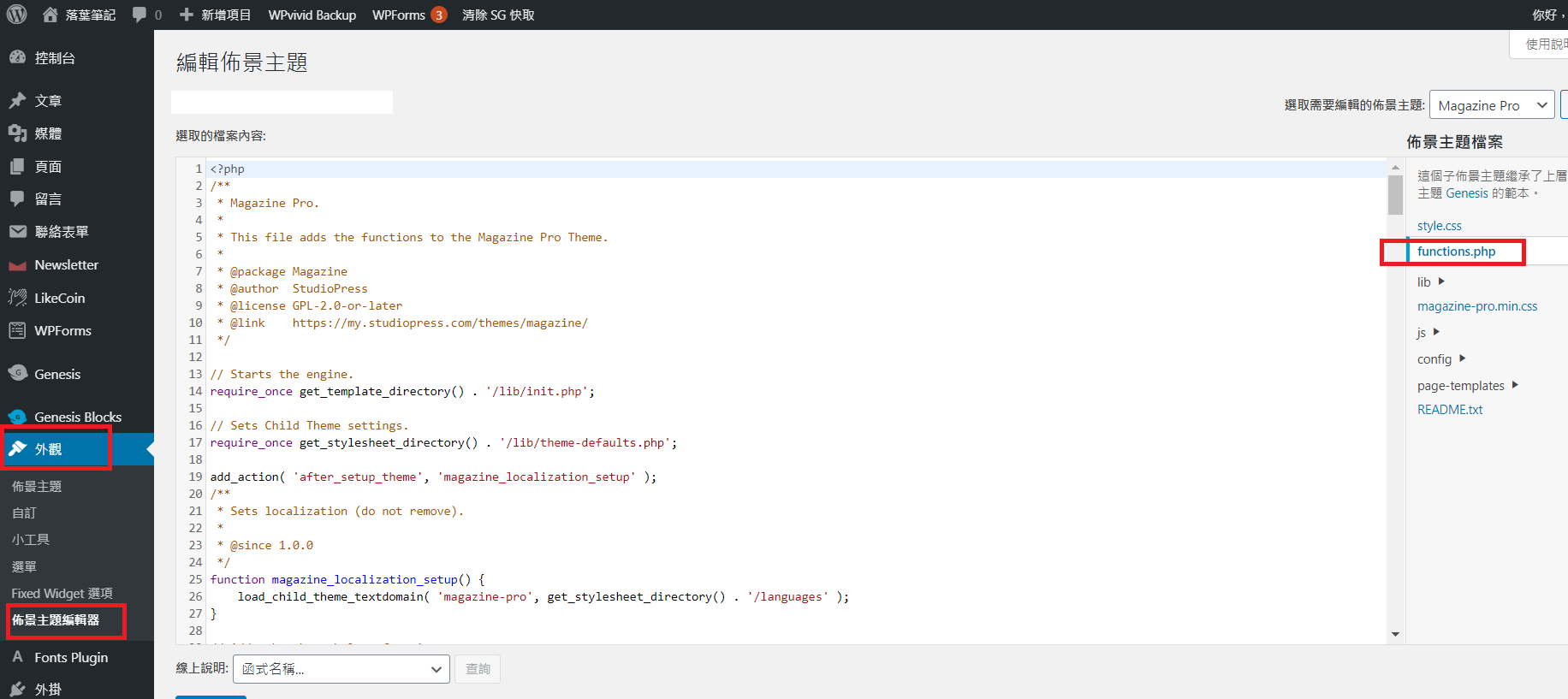 我們只需要在控制台→外觀→佈景主題編輯器→functions.php