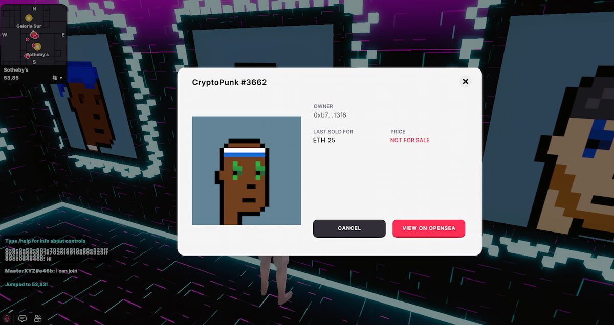 然而Decentraland讓我提不起興趣,就只是一個連結錢包的大型聊天平台而已。