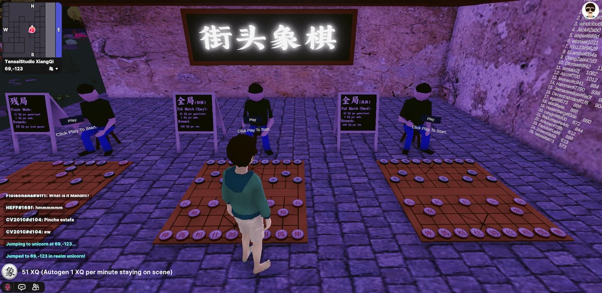 接著來到街頭象棋,要玩象棋要赴象棋貨幣51元,每在這個地方掛機1分鐘就會獲得1元象棋貨幣,意思是我要先在這裡發呆51分鐘才能玩遊戲。