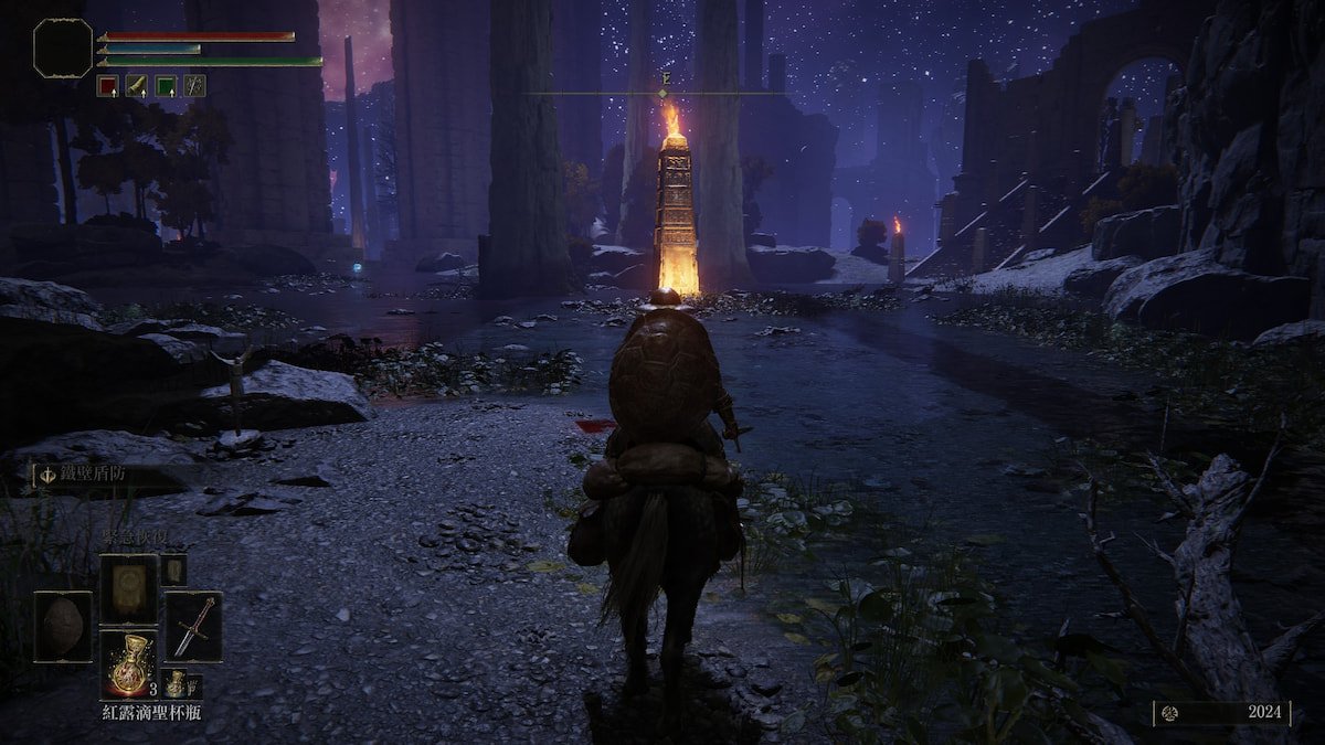 雖然說艾爾登法環是開放世界,不過也可以沿著有祝福點的路前進,初期武器、裝備弱的可憐,這是很正常的。