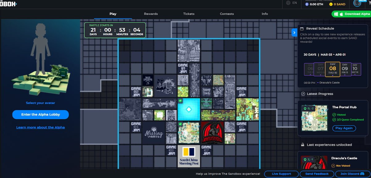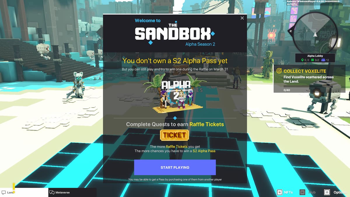 The sandbox 第二次Alpha測試在今年三月初展開,跟第一次Alpha測試不同的地方在於這次的測試所有玩家都可以一同參與,只要你有一個加密錢包就可以辦帳號,並且進入遊戲遊玩。