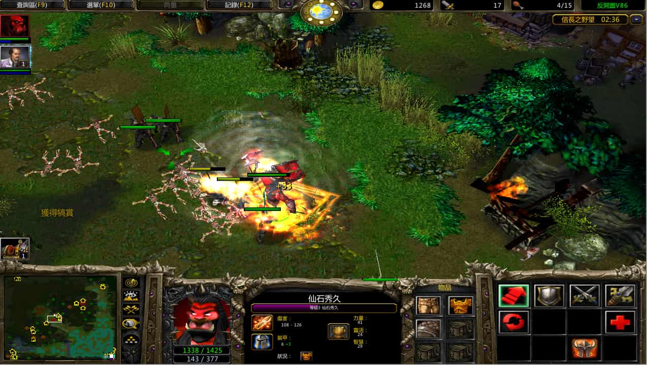 魔獸信長就比較英雄主義一點,玩信長幾乎不在乎農兵技巧,而是在於殺敵方英雄,而且只要技能接的好、裝夠肥,很常會出現一殺五的場面。不過說實在,我自己比較喜歡玩信長,雖然死的快或殺人殺得快,但也很吃重生存技術的,比如開抗時機,雖然對方慶次開大絕飛過來