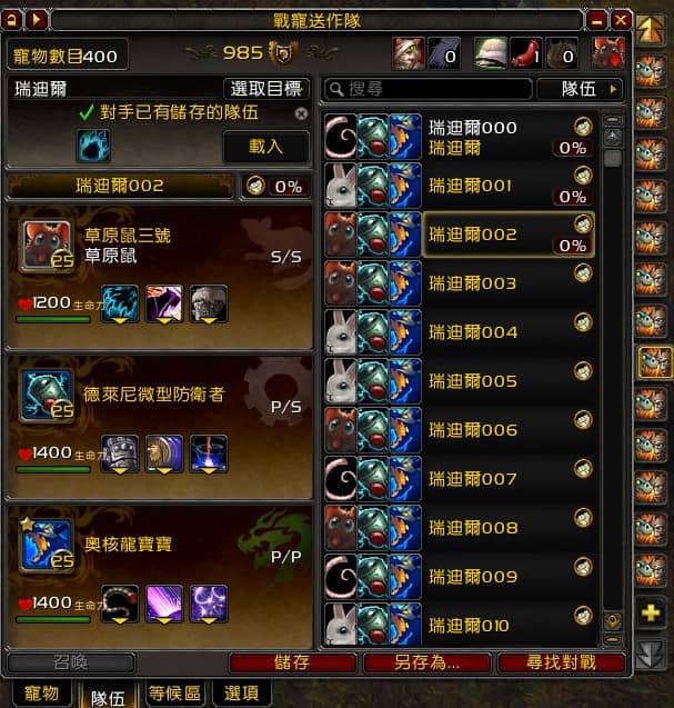 進行概念:因第一隻寵速度比敵方熊還慢,所以放完奔竄後就會被殺死了。